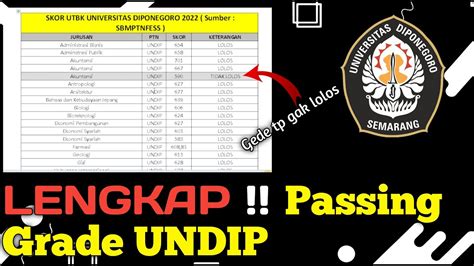 Passing grade merupakan batas nilai minimal yang harus dicapai agar berkesempatan untuk diterima di jurusan dan perguruan tinggi negeri (PTN) tujuan, sedangkan Nilai rata-rata adalah sebuah nilai pada suatu bilangan yang mewakili sekumpulan data. Dalam ilmu statistika, rata-rata disebut juga dengan mean